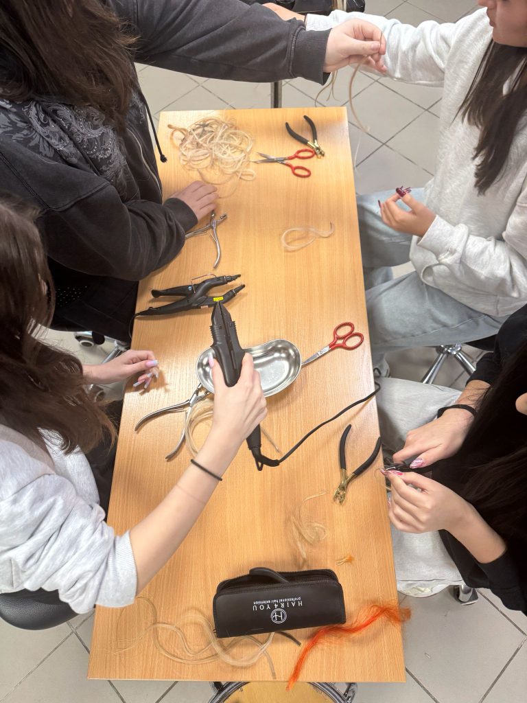 W Zespole Szkół nr 2 w Dzierżoniowie odbywają się zajęcia praktyczne dla uczniów klas technikowskich kształcących się w zawodzie technik usług fryzjerskich, prowadzone przez Roksanę Świtalską. Podczas zajęć uczniowie uczą się wykonywania nowoczesnych zabiegów fryzjerskich, w tym przedłużania włosów metodą ultradźwiękową. Praca odbywa się na naturalnych, dziewiczych włosach oraz z wykorzystaniem specjalistycznego sprzętu zakupionego w ramach projektu, co pozwala uczniom zdobywać praktyczne umiejętności zgodne z aktualnymi standardami branży fryzjerskiej. Zajęcia cieszą się bardzo dużym zainteresowaniem – uczniowie chętnie w nich uczestniczą i z niecierpliwością czekają na kolejne spotkania. Zdobyta wiedza i doświadczenie z pewnością zaprocentują w przyszłej pracy zawodowej naszych uczniów.
